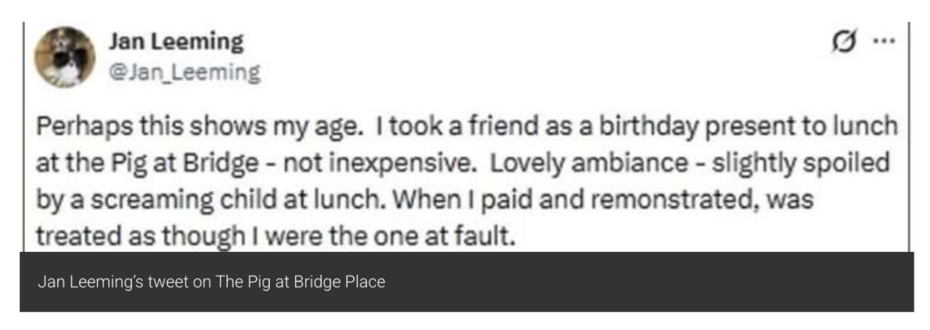 Ex-BBC Star Jan Leeming Slams The Pig at Bridge Place Over Noisy Kids